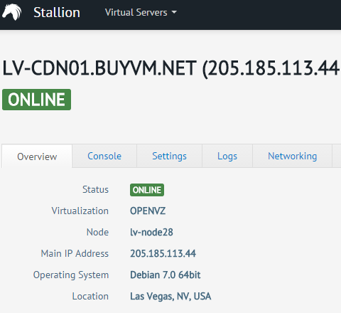 Stallion is our custom in-house developed control panel for managing your virtual servers. Stallion is the result of five years of experience in the VPS industry. Stallion is under constant development and we continue to add new features.
